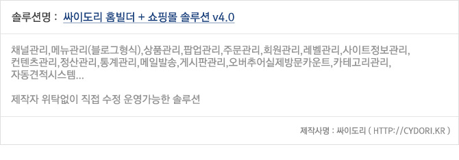 »ç¾÷ÀÚ¹øÈ£ : 409-20-41114 | Á¤º¸Ã¥ÀÓ°ü¸®ÀÚ : ¿À°æÁø | ÀüÈ : 010-4762-0100 | ÆÑ½º : 0504-461-0100 | cydori@cydori.kr±¤ÁÖ ¼±¸ ¿ùµåÄÅ4°·Î 82, 2ÃþCOPYRIGHT ¨Ï2002 CYDORI CO. ALL RIGHTS RESERVED.