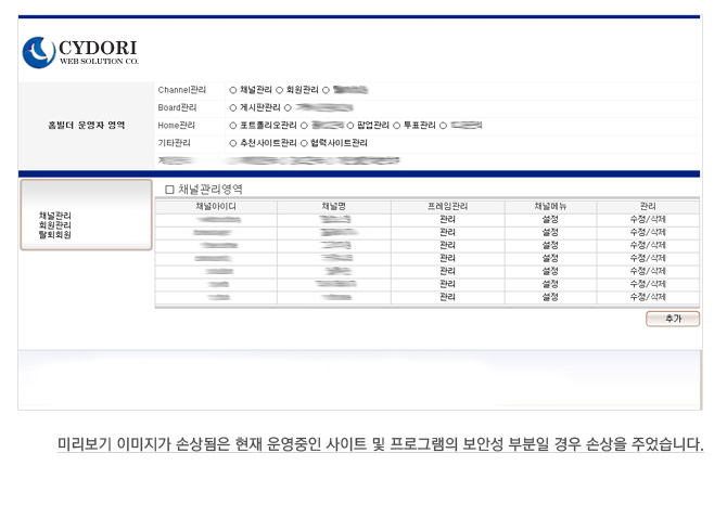 »ç¾÷ÀÚ¹øÈ£ : 409-20-41114 | Á¤º¸Ã¥ÀÓ°ü¸®ÀÚ : ¿À°æÁø | ÀüÈ : 010-4762-0100 | ÆÑ½º : 0504-461-0100 | cydori@cydori.kr±¤ÁÖ ¼±¸ ¿ùµåÄÅ4°·Î 82, 2ÃþCOPYRIGHT ¨Ï2002 CYDORI CO. ALL RIGHTS RESERVED.